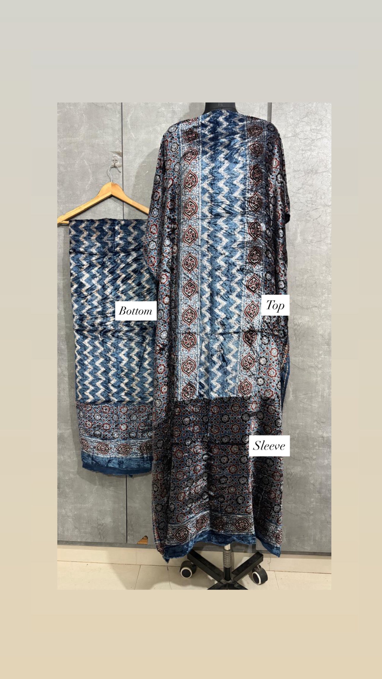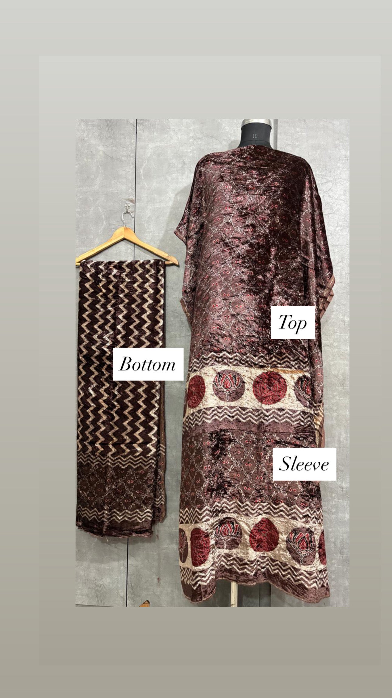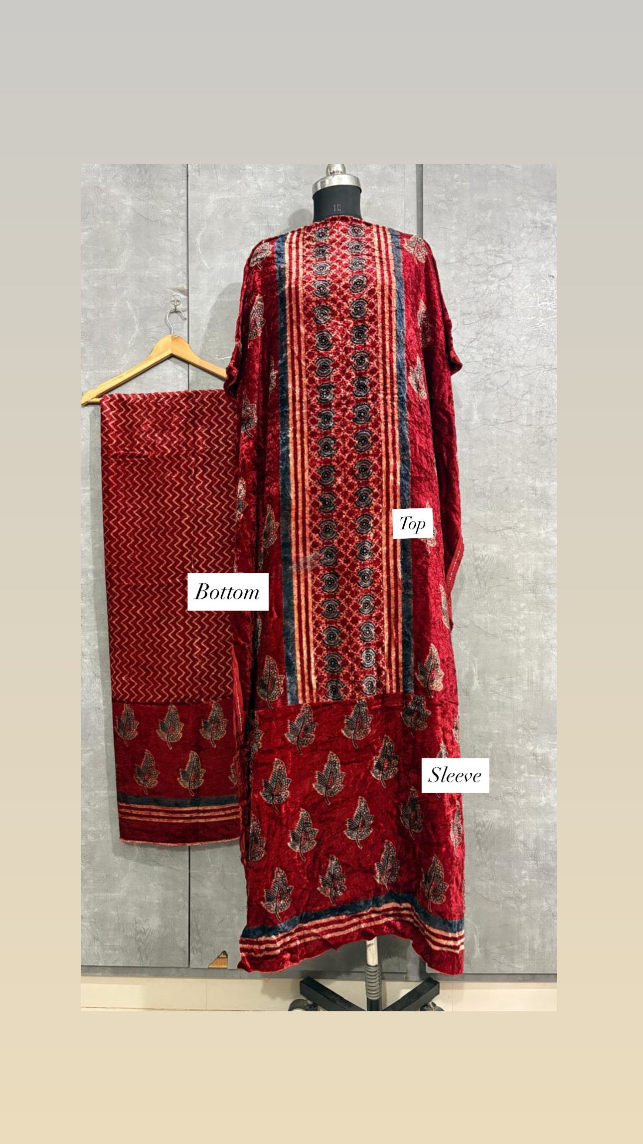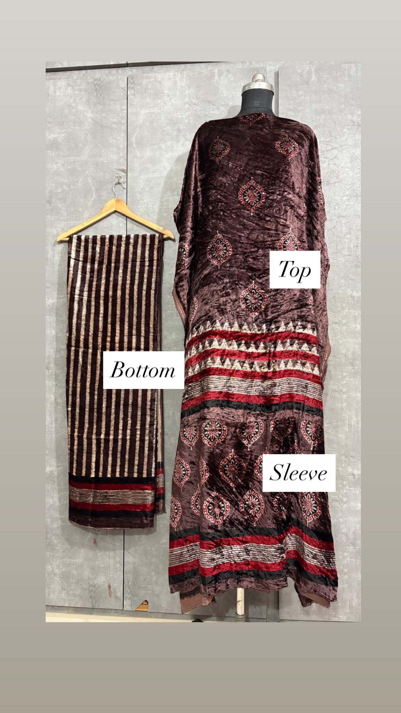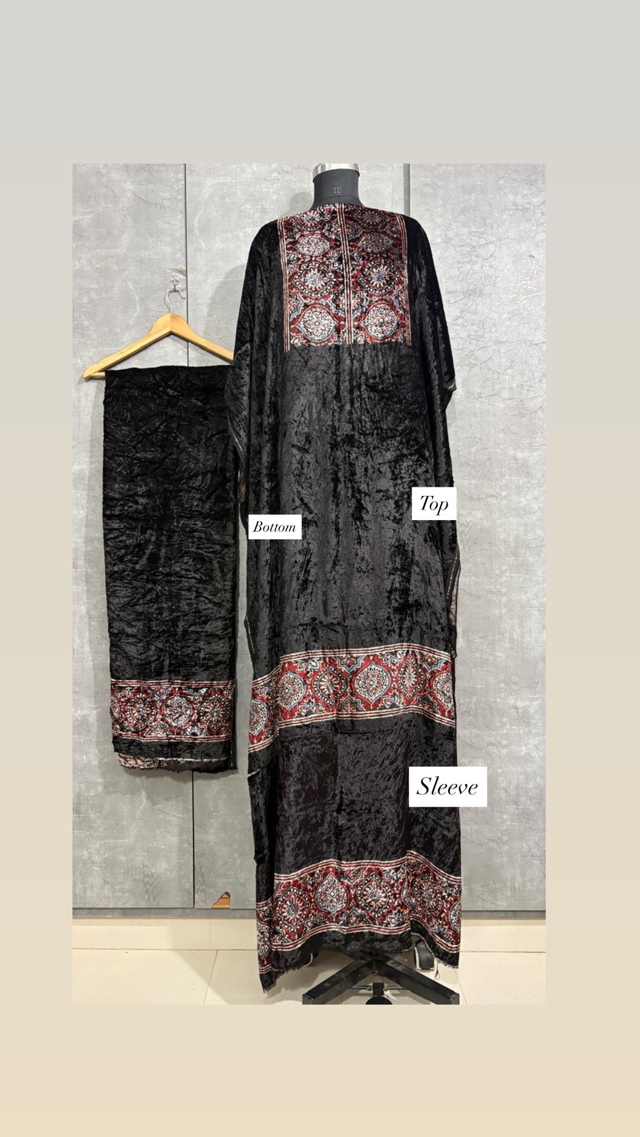 Velvet handblock ajrakh designer style top and bottom with sleeves MF0067