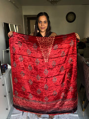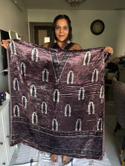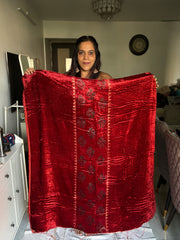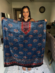 Velvet handblocked ajrakh unstitched top fabric Mf0068