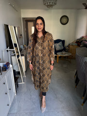 Pure georgette handblock ajrakh top and dupatta 2 piece set