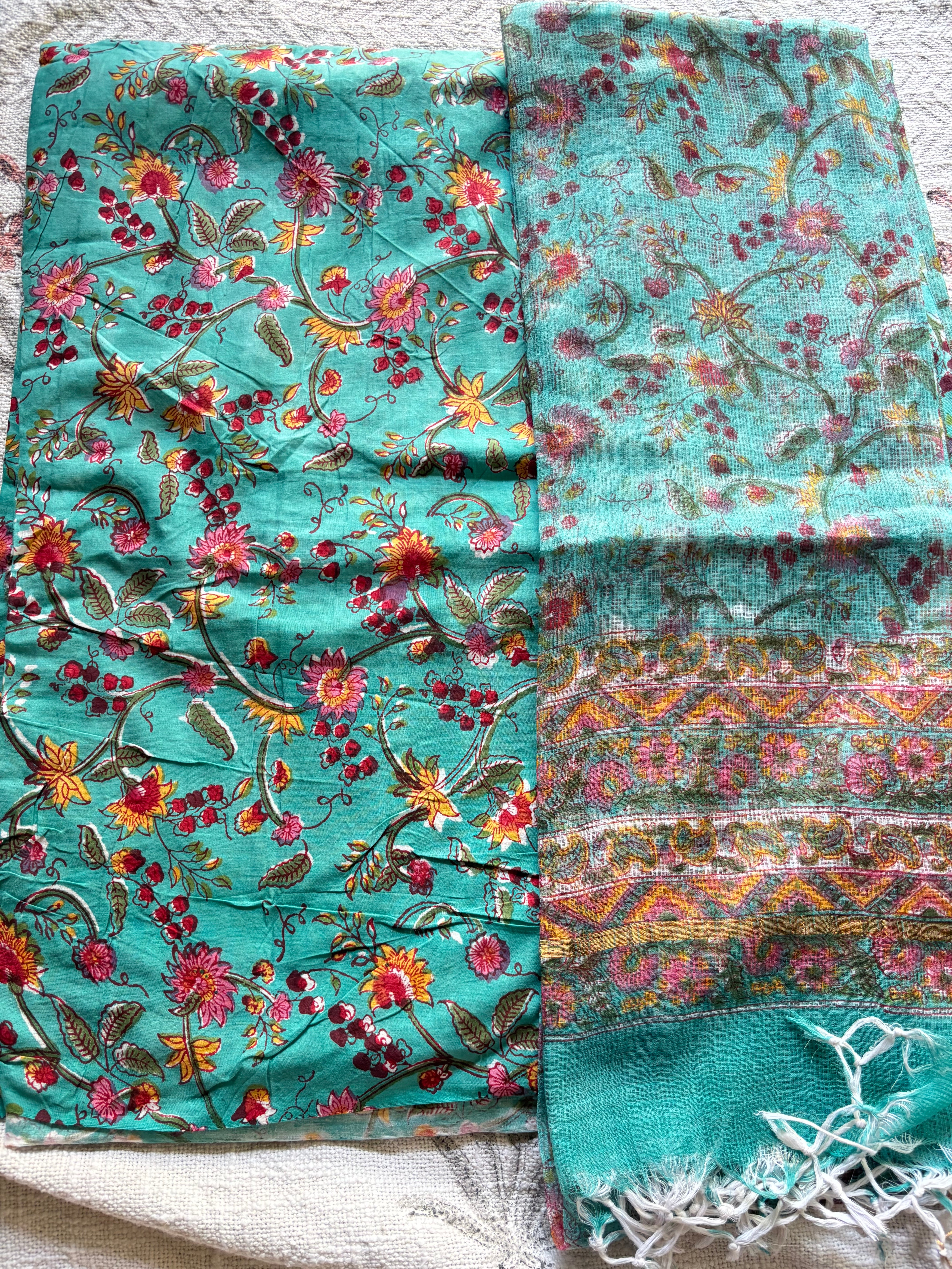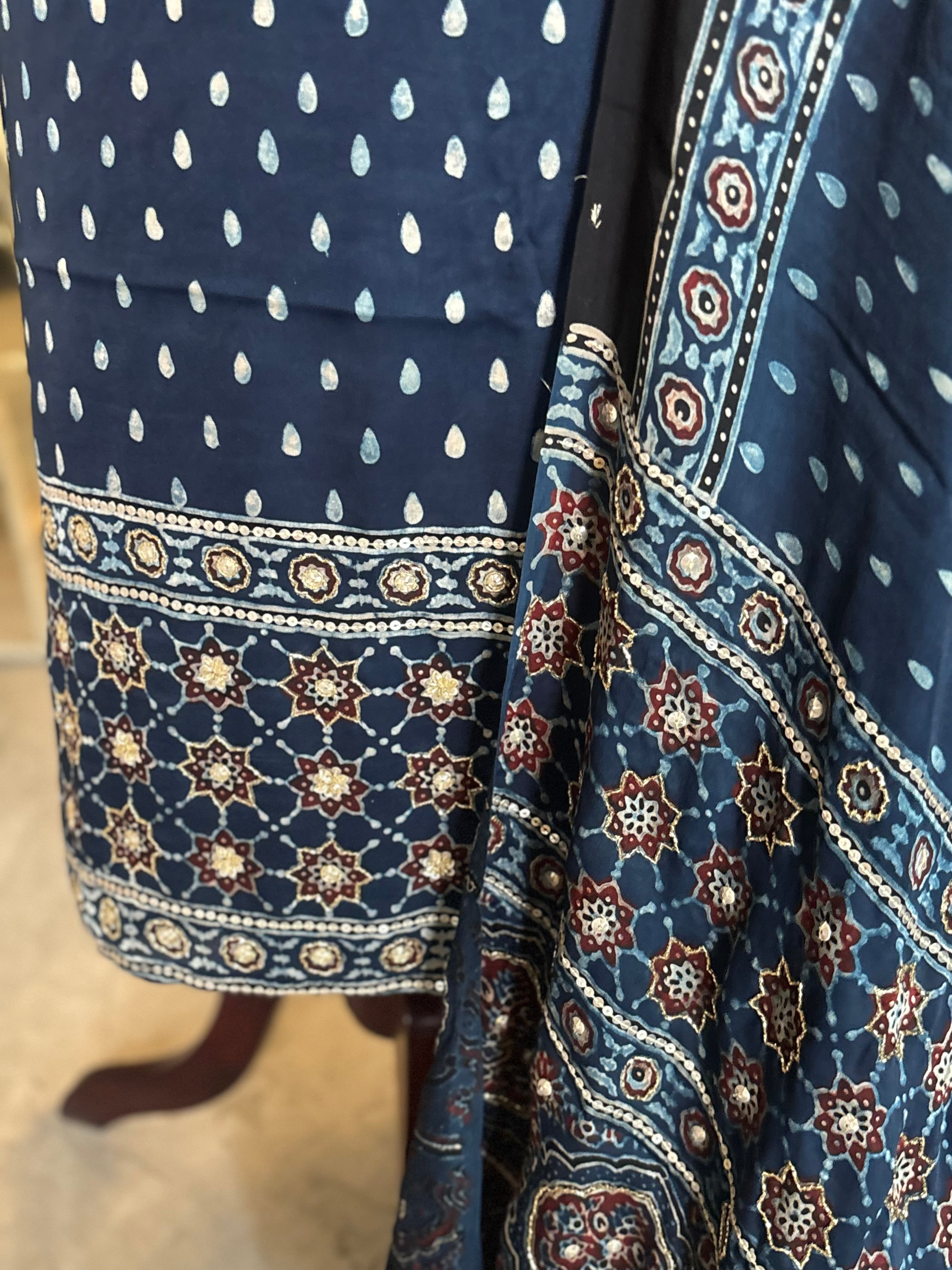 Natural dye modal silk ajrakh handworked top and dupatta with tazzels 2 piece set